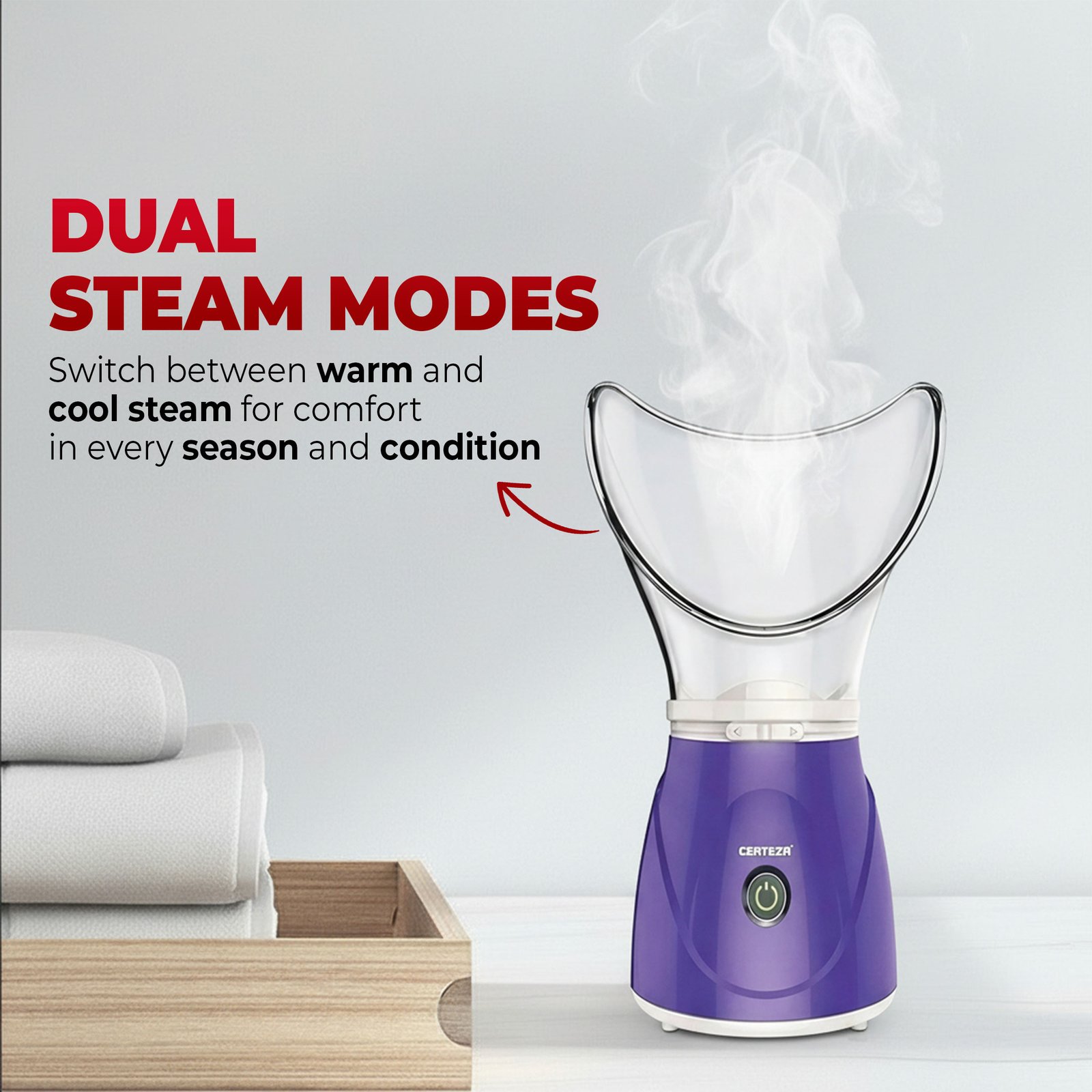 •Offers both warm and cool steam options for versatility.